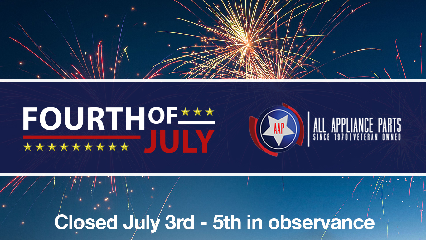 All Appliance Parts of Sarasota & Bradenton will be closed Saturday, July 3rd through Monday, July 5th in observance of Independence Day. We will reopen Tuesday, July 6th with our regular hours. We hope you, your family and friends have a great and safe holiday!